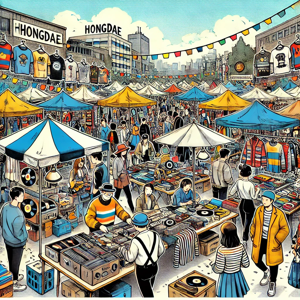 Hongdae is famous for its flea markets, where you can find a variety of handmade goods, vintage items, and unique souvenirs. The most famous one is the Hongdae Free Market, held every Saturday, where local artists and craftsmen sell their creations. It's an excellent place to find one-of-a-kind gifts and support local talent.