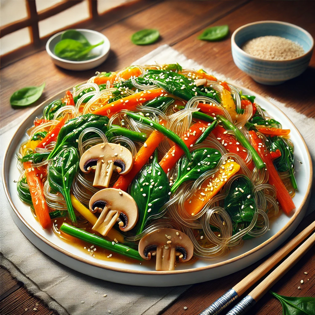 Japchae (잡채), a classic Korean dish, is a delightful mix of glass noodles, vegetables, and a savory-sweet sauce. This dish is known for its vibrant colors, chewy texture, and balanced flavors. Below is a detailed recipe to make authentic Japchae at home.